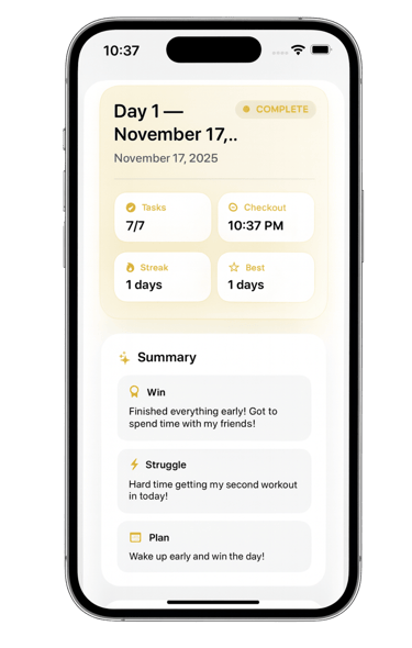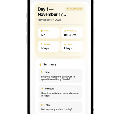 Daily check-ins & check-outs that build real discipline