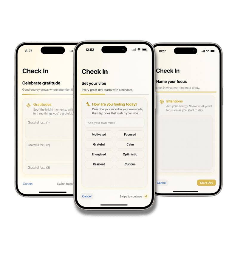 Check in, check out, track your streaks, and watch your progress compound.